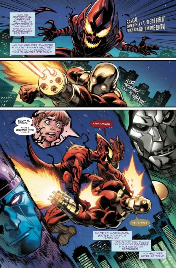 The Fantastic Four may not have much history with Venom – beyond helping Spider-Man capture the symbiote way back when – but when both Doctor Doom and Kang the Conqueror start getting involved in the war… now we’ve got the FF’s attention! It’s a wild battle of mad geniuses that spans thousands of years and also the space of a breath – with stakes that only the Fantastic Four could fathom!