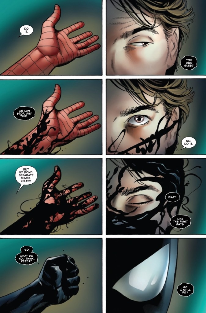 THE SPIDER-MAN IN BLACK! Eddie Brock wants the symbiote, Dylan Brock wants the symbiote…but they’re forgetting about the first host to ever wear the black…PETER PARKER! That’s right – Spider-Man is back in black again, and this time, he’s liking how it fits him! Maybe the winner of the Venom War could be the OG!