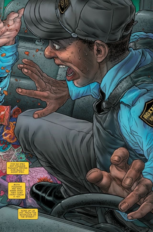 DEAD OR ALIVE? OR BOTH? As the two Venoms face off, a darker strain of symbiote has slithered across New York City…one that can reanimate the dead and turn the living into an engine of mindless hunger with just one bite! That’s right – zombie symbiotes making symbiote zombies! And you thought they liked eating brains before!