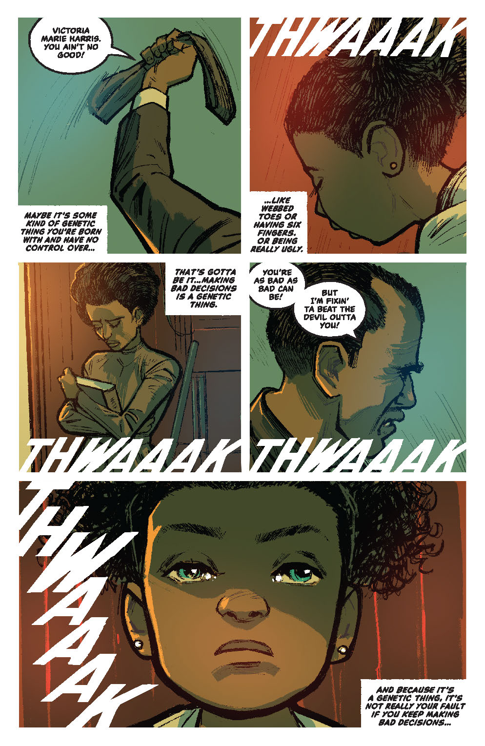 Victory arrived on the scene as Vampirella’s lover, and ended up a very powerful pawn of Vampi’s mother, Lilith. Along the way, she’s made new friends, seen countless horrors, and been saddled with a demon’s ring that she can’t get rid of (but which has granted her some nifty powers). Despite all that, there’s still a lot that we don’t know about Victory, like what her childhood was like, what she’s been doing with her newfound powers — and why so many demons are trying to kill her to gain possession of her Belial ring. Luckily for us, all those questions (and more!) are answered in this invaluable new volume collecting all five issues of the enlightening series from writer DAVID F. WALKER (Compass, Young Justice, Naomi) and artist BRETT WELDELE (The Beauty, Do Androids Dream of Electric Sheep?)!