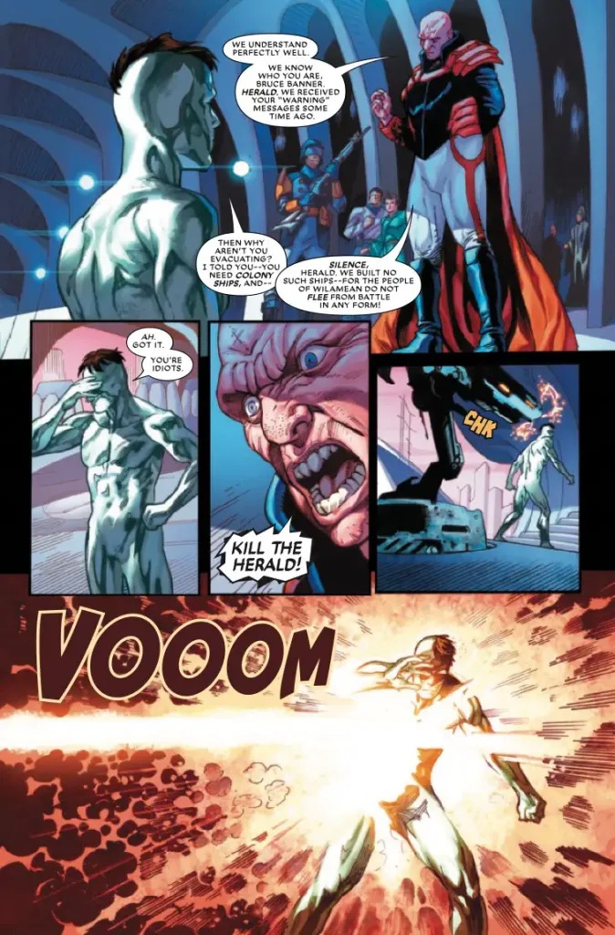 The first in a new series of one-shots that asks the question: What if Galactus recruited some of Marvel’s best and brightest heroes as his new cosmic heralds? See how the Power Cosmic transforms these once-familiar champions, twisting and turning all of Marvel history in their wake! In this tale, Galactus has conscripted Earth’s strongest warrior – the Incredible Hulk – into his service. But what will turn out to be the bigger mistake: trying to direct the fury of the Green Goliath…or giving the great mind of Bruce Banner a cosmic problem to solve?