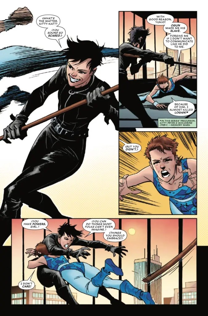 CLAREMONT RETURNS TO THE FAN-FAVORITE DUO! When KITTY PRYDE nearly lost her soul to OGUN during her journey to Japan, LOGAN was there to keep the youngest X-MAN on the path to good. But as a mysterious force threatens their lives while staying with MARIKO YASHIDA, it’s going to take all of their combined mutant, ninja and fighting skills to protect those they love!