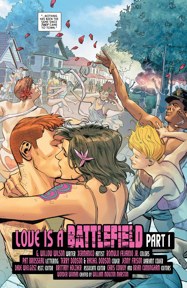 Diana made a promise to Aphrodite: she would do everything she could to help her find her son, Atlantiades, lost somewhere on Earth. But when they pick up his trail, there’s no way to prepare themselves for what they’ll find: a perfectly normal suburban town…driven out of its mind with uncontrolled lust!