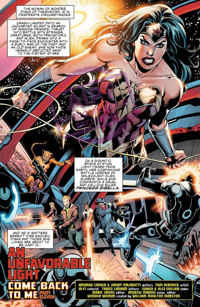 Betrayed by Princess Sibella, Wonder Woman attempts to hold her foe responsible for her actions-but their dispute will have to be put on hold upon the arrival of the Light Lords, who leave a trail of destroyed planets in their wake! Diana and Sibella will have to learn to work together for the sake of the galaxy, as Amanda Conner, Jimmy Palmiotti, and Tom Derenick’s space-faring tale draws to a close!