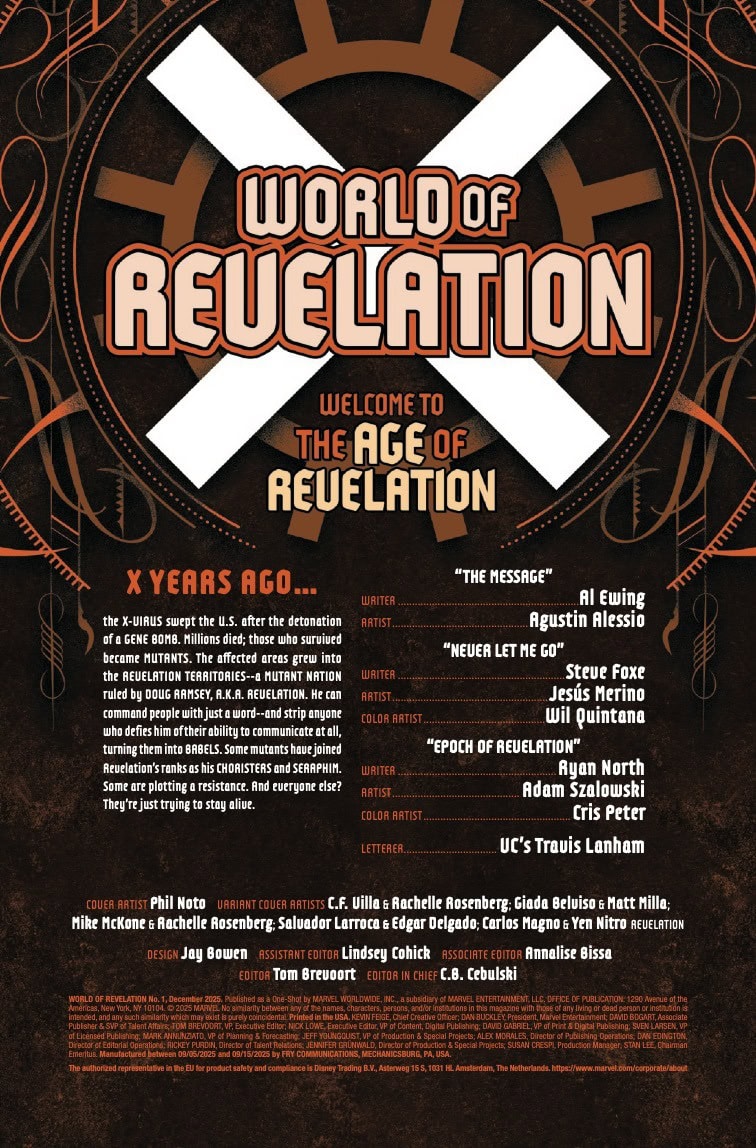 THE WORLD OUTSIDE YOUR WINDOW IS GONE! X YEARS LATER, what happened to the Fantastic Four? And what horrors plague the East Coast? How does the rest of the world survive the rise of Revelation? And far above, on Arakko, what does Apocalypse think of his heir’s new empire? Discover the far-reaching impact of AGE OF REVELATION across the Marvel Universe.