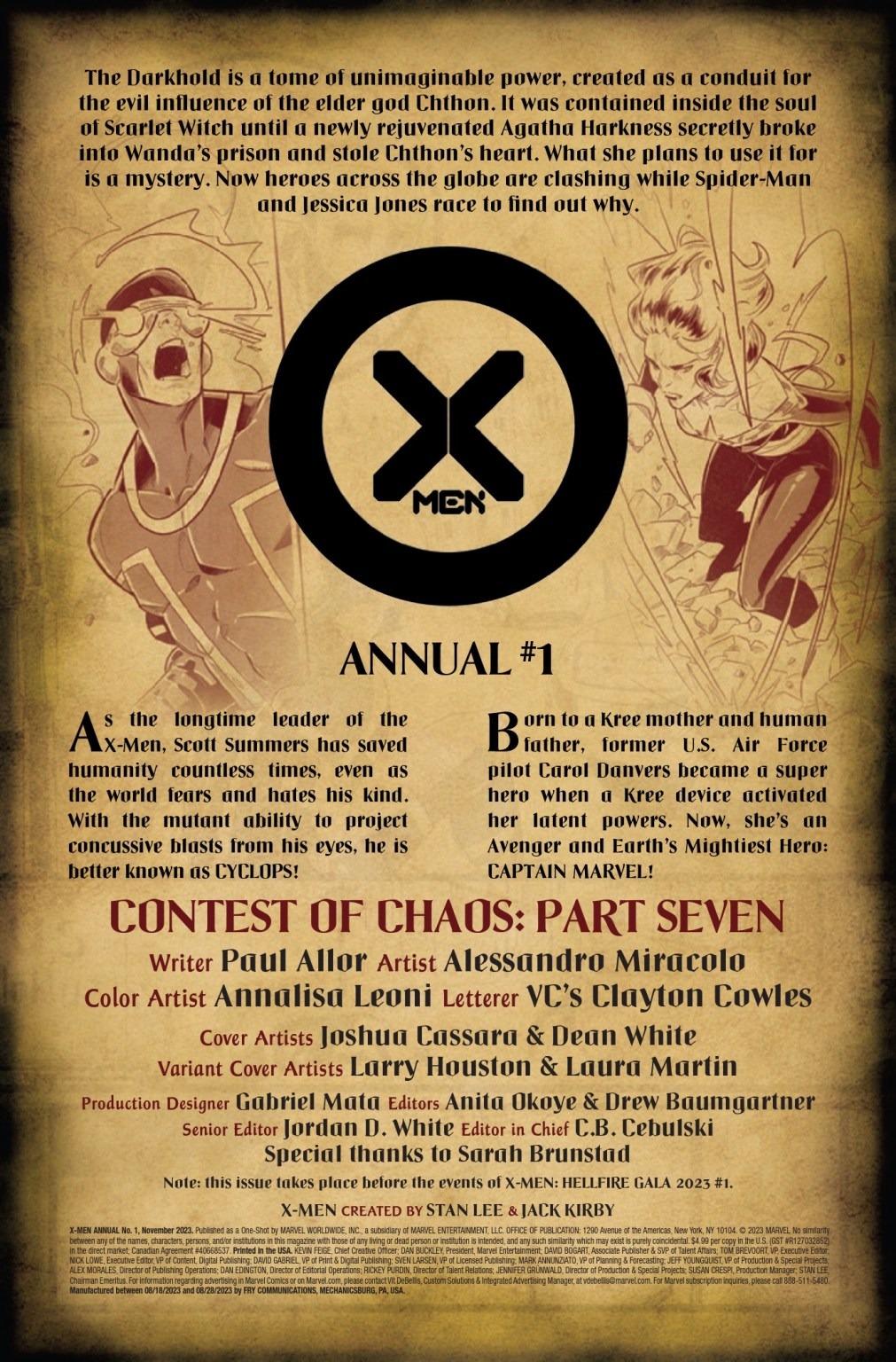 X-Men Annual #1 goes on sale on September 20th, priced $4.99.