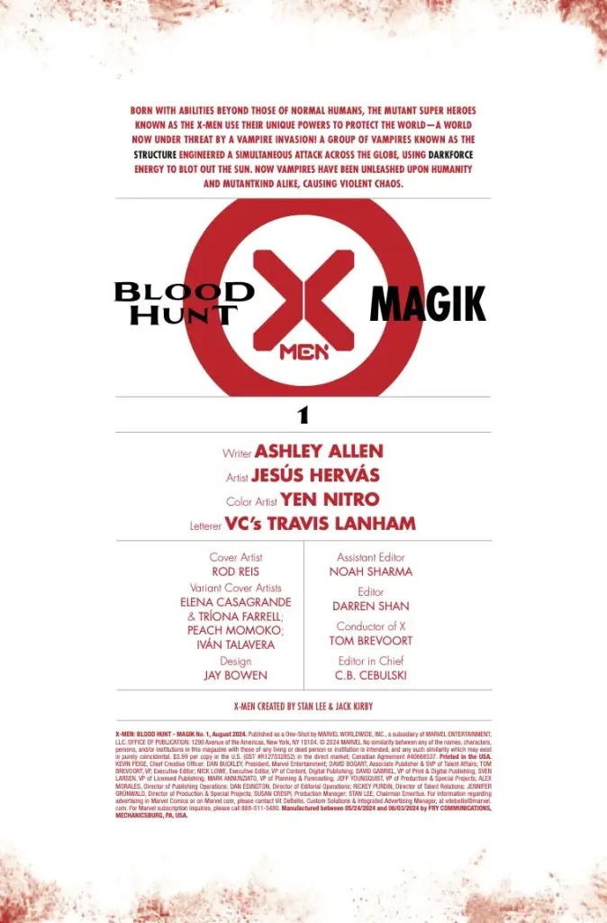 X-Men: Blood Hunt – Magik #1 goes on sale on June 26th, priced $3.99.
