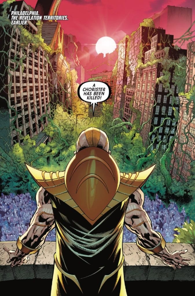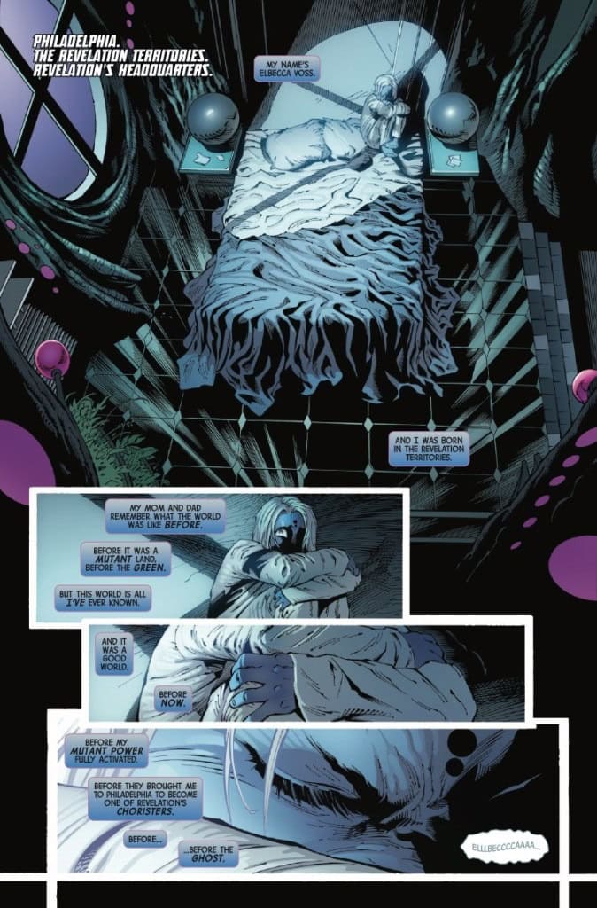X YEARS LATER, after the assassination of one of his prized Choristers, Revelation welcomes a new mutant to his capital city of Philadelphia. But the capital of the Revelation Territories hides many dangers, not the least of which are her rival Choristers — and Fabian Cortez will allow no one to challenge him for Revelation’s favor. But this new mutant has a secret ally – the Ghost of Philadelphia!