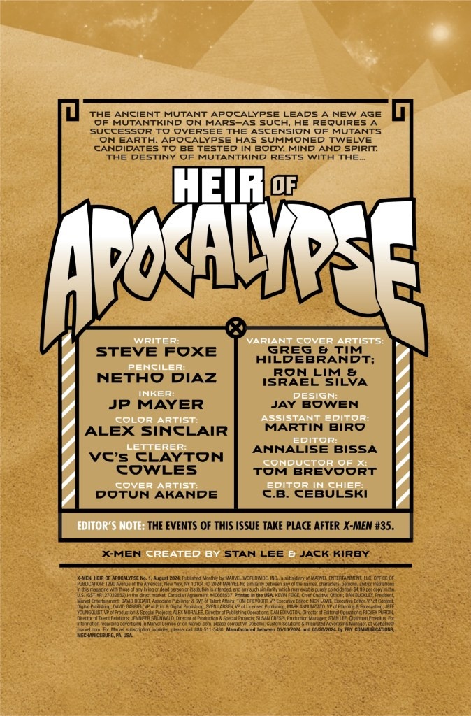 The search for En Sabah Nur’s successor begins this coming week as Marvel Comics launches X-Men: Heir of Apocalypse, and you can check out the official preview of the first issue below…