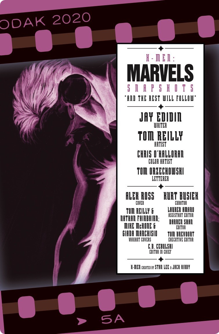 X-Men: Marvels Snapshot #1 goes on sale on September 16th, priced $4.99.