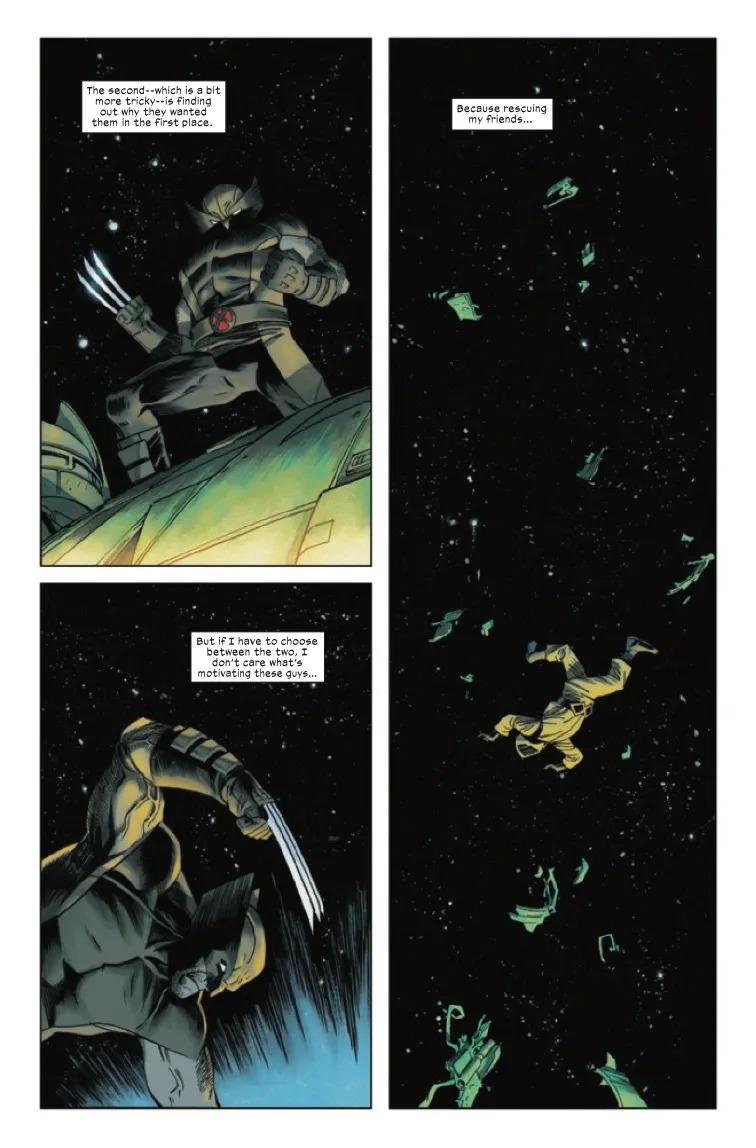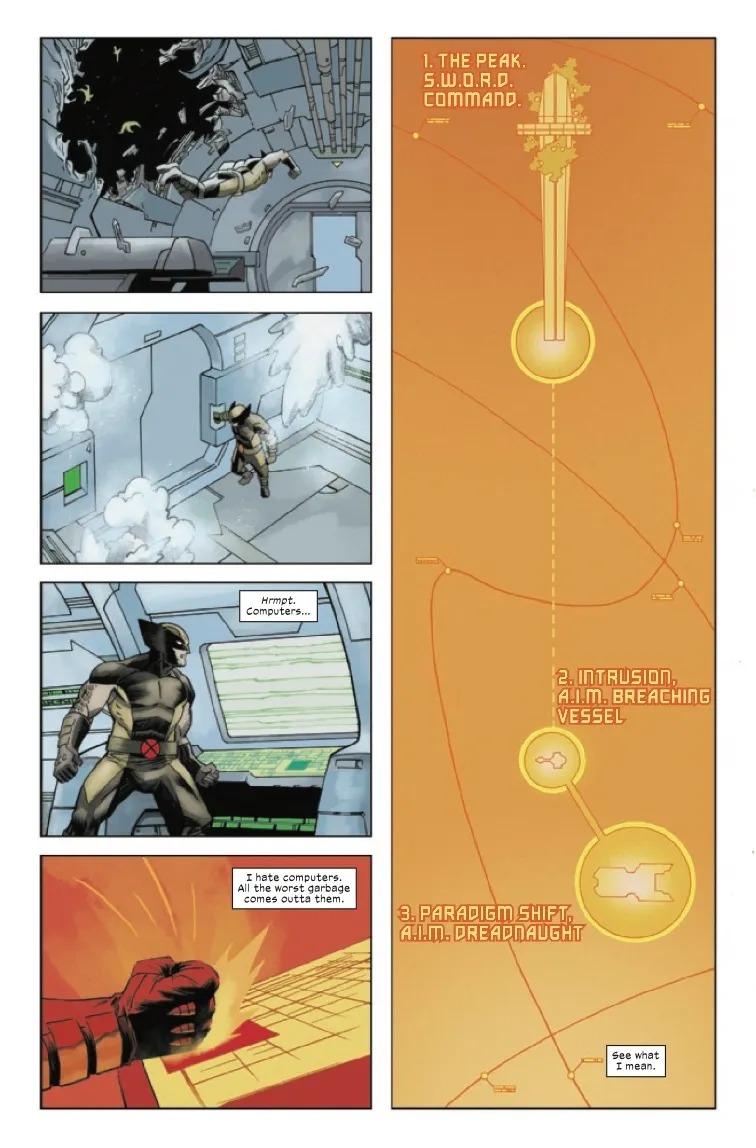 WOLVERINE JUMPS INTO THE VOID! When A.I.M. manages a covert infiltration of the S.W.O.R.D. station and kidnaps three mutants, it’s up to Wolverine to take one giant leap for man and get them back. From the vacuum of space to the dripping guts of an evil supercomputer, Logan will stop at nothing to save his friends. Collecting the first four chapters of the hit MARVEL INFINITY COMIC by Head of X Jonathan Hickman and superstar artist Declan Shalvey for the first time in print!