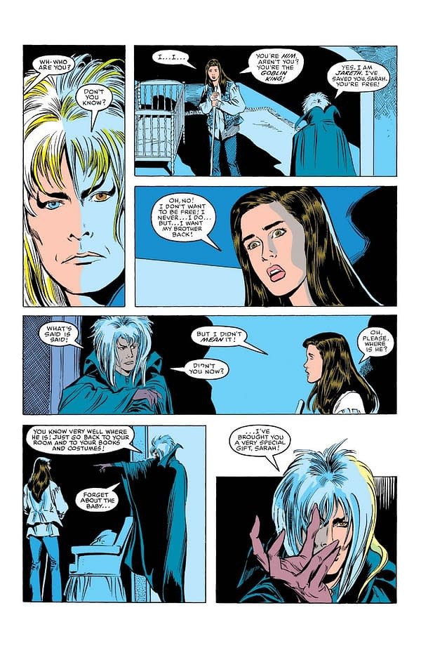 One of the most enthralling aspects of this comic book adaptation is how it keeps the whimsical yet unsettling tone that made the film so memorable. The dialogue stays largely true to the original script, with slight adjustments to suit the comic format. Some may feel the story is a bit rushed in comparison to the film, but the essence of Labyrinth remains the same.