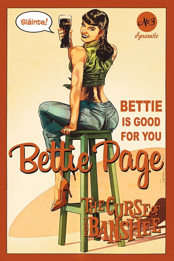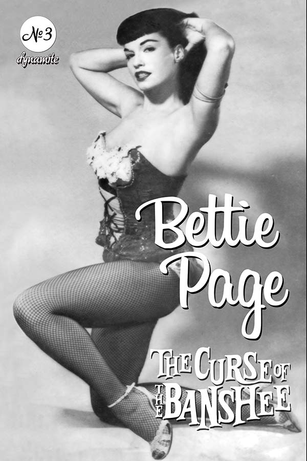 “The pin-up queen… of adventure is back! Dynamite Entertainment proudly presents: Bettie Page in “The Curse of the Banshee!”