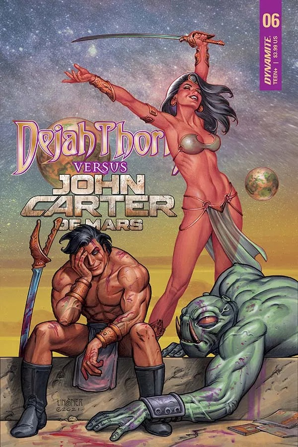 John and Dejah continue to fight IMPOSSIBLE odds! Having escaped into the random folds of time, our favorite alien power couple wage war against decaying emissaries of evil that are searching for a perfect host, and may have found one in…JOHN CARTER!?
