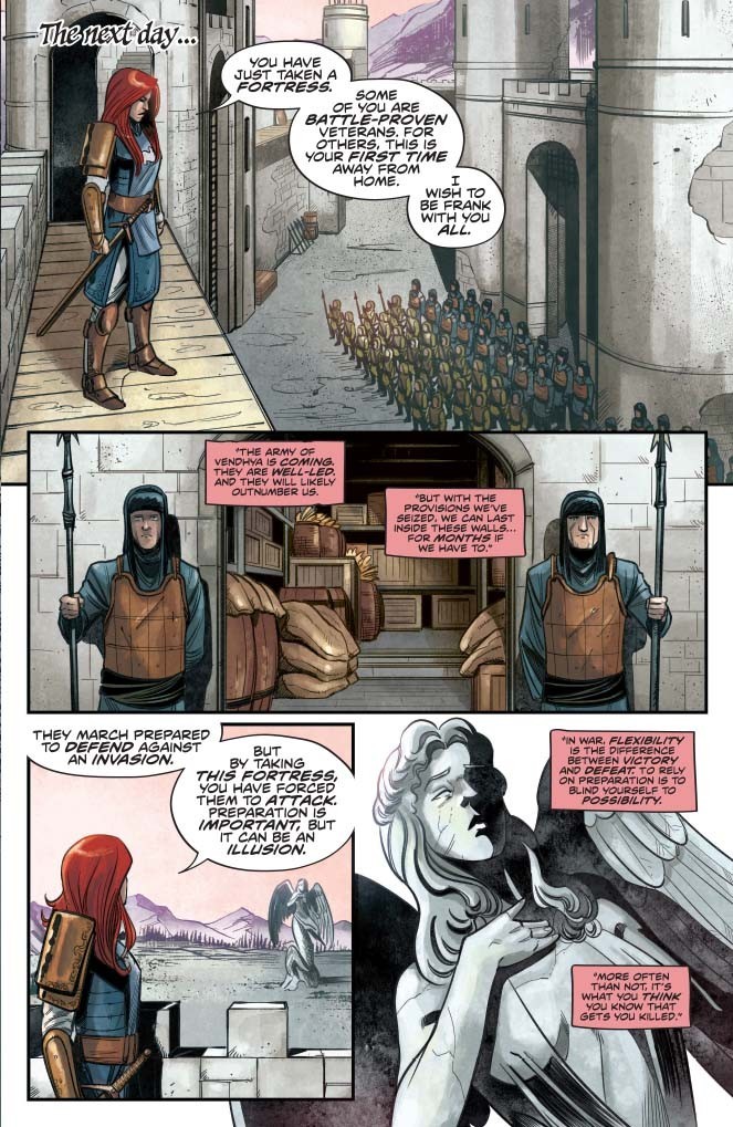 Year Two continues, by MARK RUSSELL (Wonder Twins, Second Coming) and BOB Q (Captain America). Chaos descends as Khitai’s new Master Of War, Sonja The Red, knows what she must do to restore order. But to do what is right, she may lose everything…