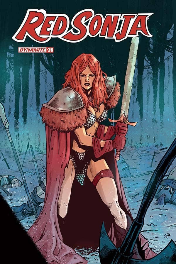 Dynamite Entertainment releases Red Sonja #26 this Wednesday, and we’ve got the official preview of the issue for you here; take a look…