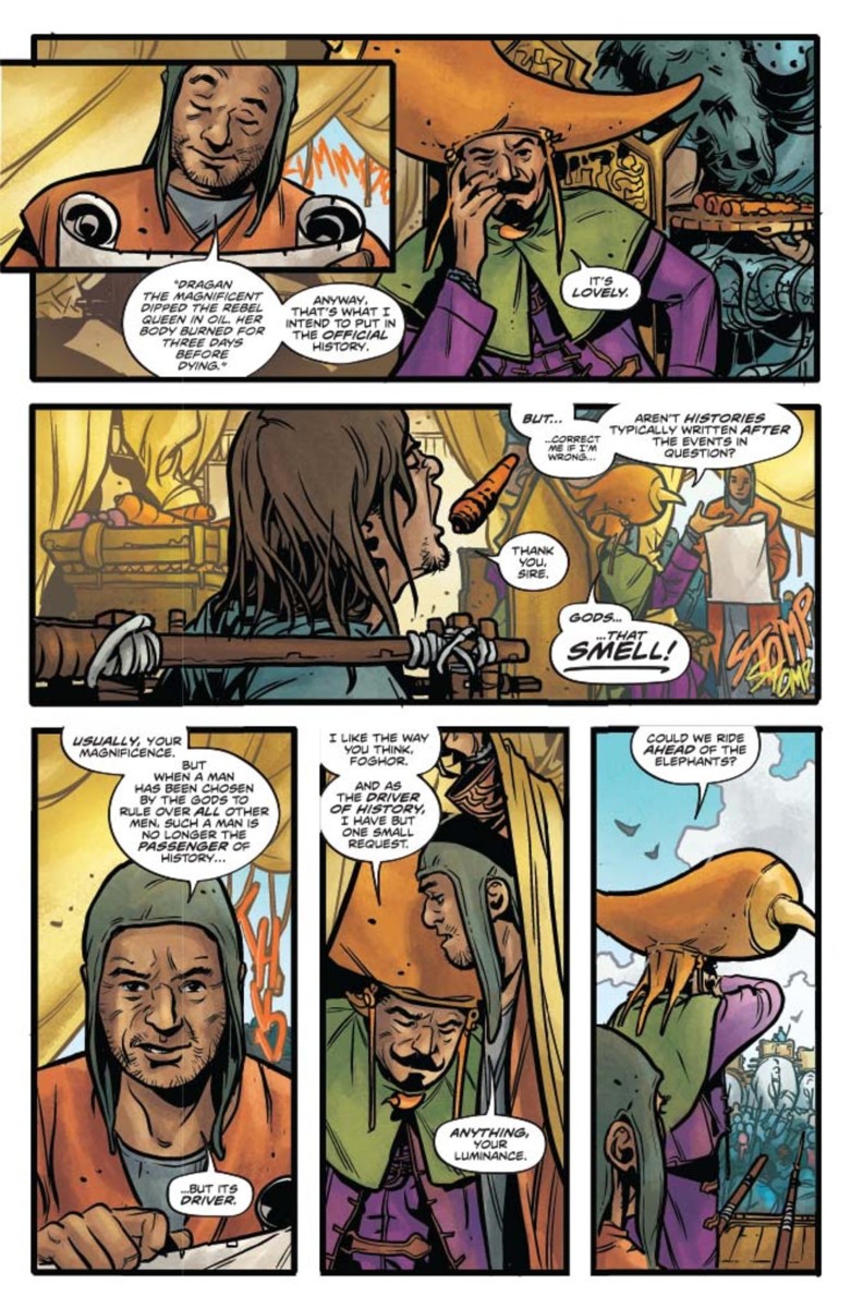Like an all-consuming fire, the armies of Dragan The Magnificent pursued Sonja The Red until there was nowhere else to flee. The corpses of her people scattered before her like charred rabbits, she turned to face his exquisite wrath. And prayed in vain for death to take her quickly. The epic continues by MARK RUSSELL (Exit Stage Left: The Snagglepuss Chronicles, The Flintstones) and MIRKO COLAK (Conan).