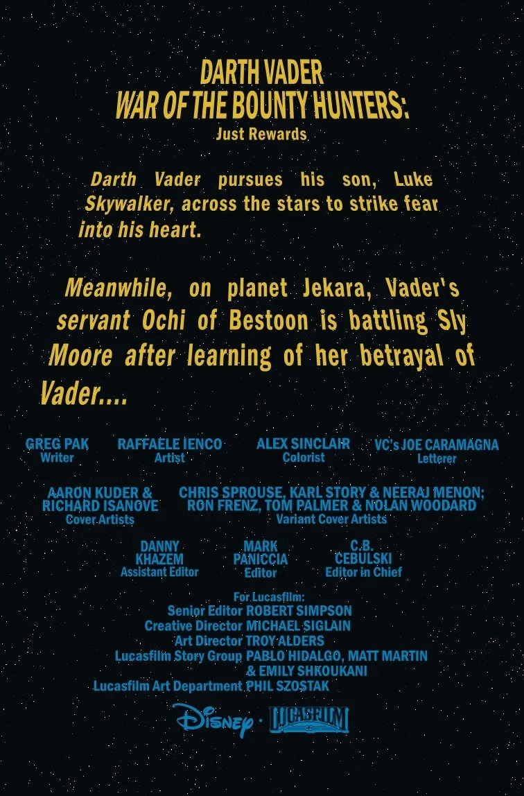 Now Vader finally takes care of all his business in this blockbuster conclusion to the WAR OF THE BOUNTY HUNTERS story arc.