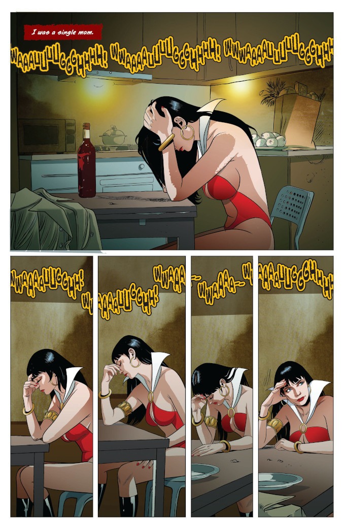 Having finally rescued her baby from Draculina, Cicero begs Vampirella, for his sake and the sake of the world, to give the infant back.