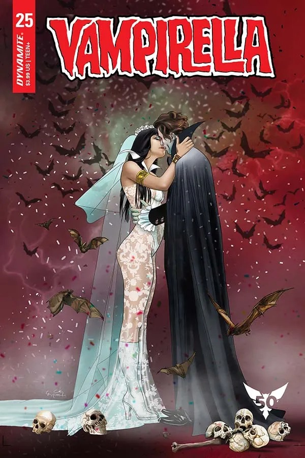 Wedding bells are ringing in this week’s Vampirella as the Daughter of Drakulon enters an unholy matrimony with Count Dracula in the final issue of Dynamite’s current ongoing series; check out the preview here…