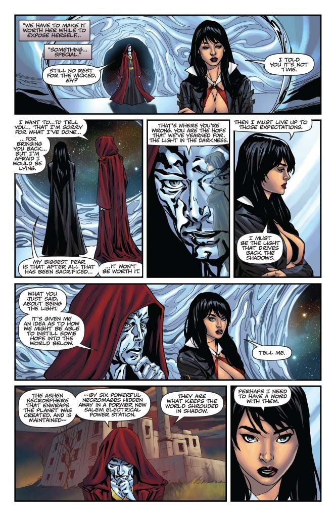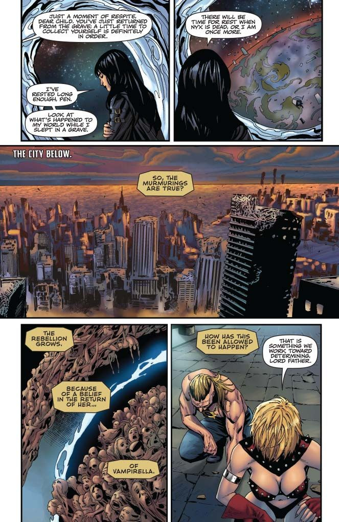 Vampirella and Pendragon united! Nyx faces tough questions about her handling of things from the Chaos Lords! Hemorrhage and Nyx lay a trap for Vampirella! And it’s all heading to the fight between Hemorrhage and Vampirella you’ve been waiting for.