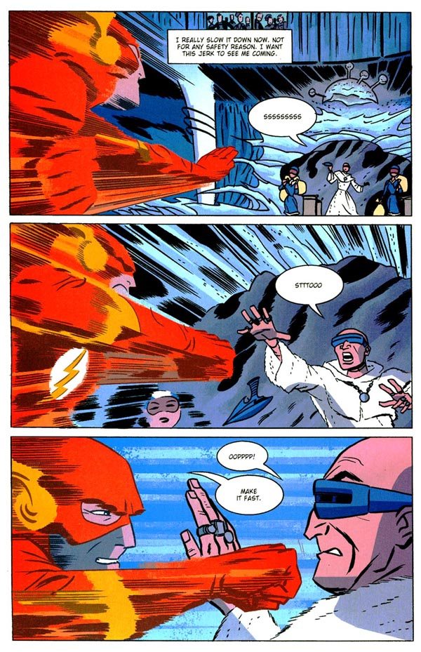 Cooke’s facial expressions also stand out and he does a good job depicting the style of the 50s and 60s, whether it’s through fashion, buildings or hair. One of the best aspects about his artwork, though, is how he shows off Flash’s speed. You really get the sense of how fast Barry can run and the confidence he has in his abilities. One of the best examples is in the fight with Captain Cold.