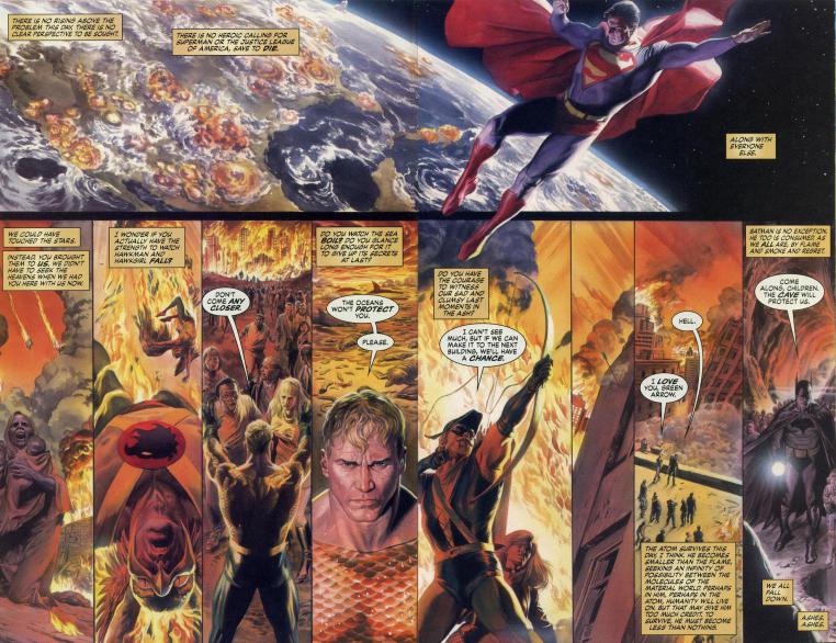 I mentioned it before, but Alex Ross’ artwork is absolutely the best thing about Justice. His sketches and paintings are incredibly detailed and realistic. Superman for one always looks great in Ross’ hands, but there’s a lot of imagery with the Man of Steel in this story that is quite memorable. Brainiac is as scary as he is because of Ross’ ability to convey the coldness of the villain. It also helps that there are several cool splash pages in the story and even in the big action scenes, most especially the climax, there are so many nuanced and subtle elements going on in the background of the panels that its worth it to re-read just to take a closer look at the artwork.