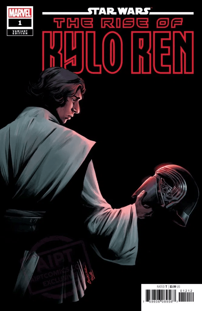 Marvel is set to explore the origin of the First Order’s new Supreme Leader this December as it launches the four-issue miniseries Star Wars: The Rise of Kylo Ren, and thanks to AIPT, we’ve got a look at the main cover to the first issue from artist Clayton Crain, along with a variant from Carmen Carnero and a movie variant. Check them out here…