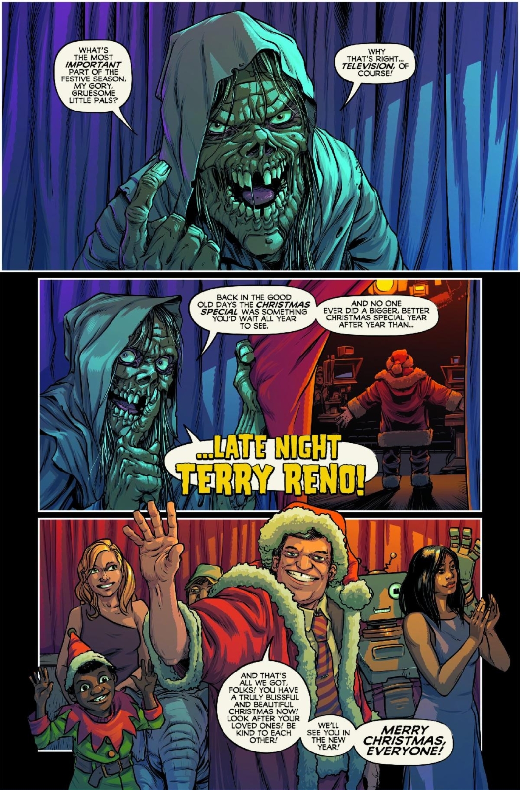 We proudly present a holiday special of petrifying proportions with two terrifying tales! First, A New Year’s Eve party gets fiendish as Tini Howard (Catwoman), Blake Howard (Punchline), and Stevan Subic (The Riddler: Year One) will have you crying for your mummy in the new year! Then, beloved comedian Terry Reno revisits a holiday classic, from the Petrol Head team of Rob Williams and Pye Parr, that quickly takes a shocking turn before a live studio audience!