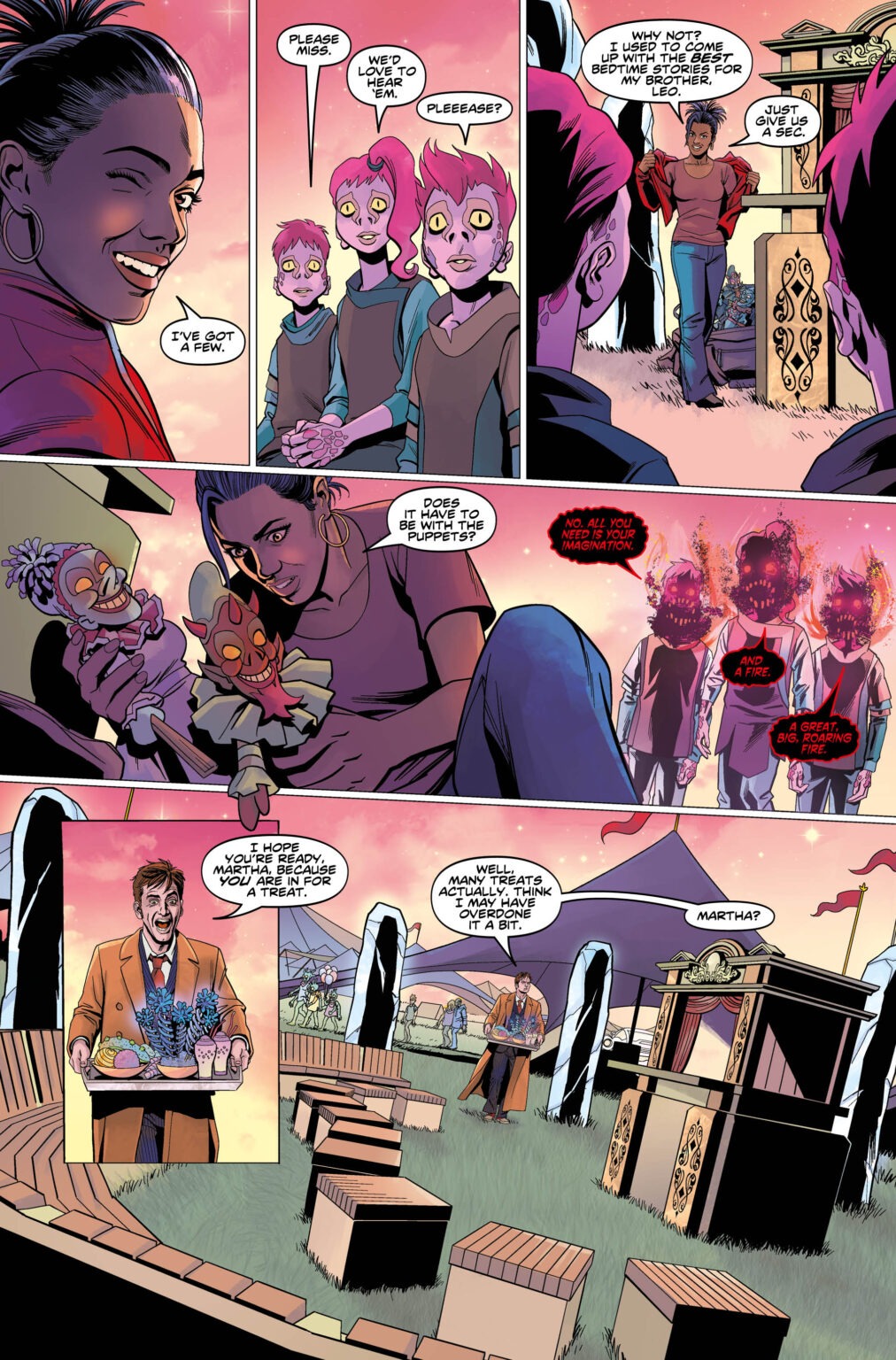 An epic story that sees companion Martha Jones captured by the insatiable Pyromeths, and her only hope for survival is to keep them distracted with sensational untold tales of the Tenth Doctor facing off against his greatest foes– both classic and new!