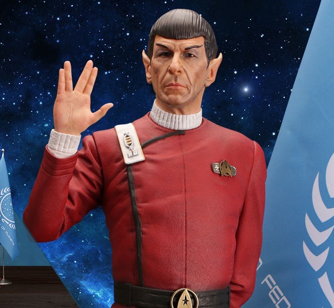 Recreated from, original CBS Studio Inc, archived materials and through a thorough examination of the original filming costumes the statue features a breathtaking likeness of actor Leonard Nimoy as Captain Spock of the U.S.S. ENTERPRISE as he appears in the Paramount Pictures STAR TREK II The Wrath of Khan film directed by Nicholas Meyer in 1982.