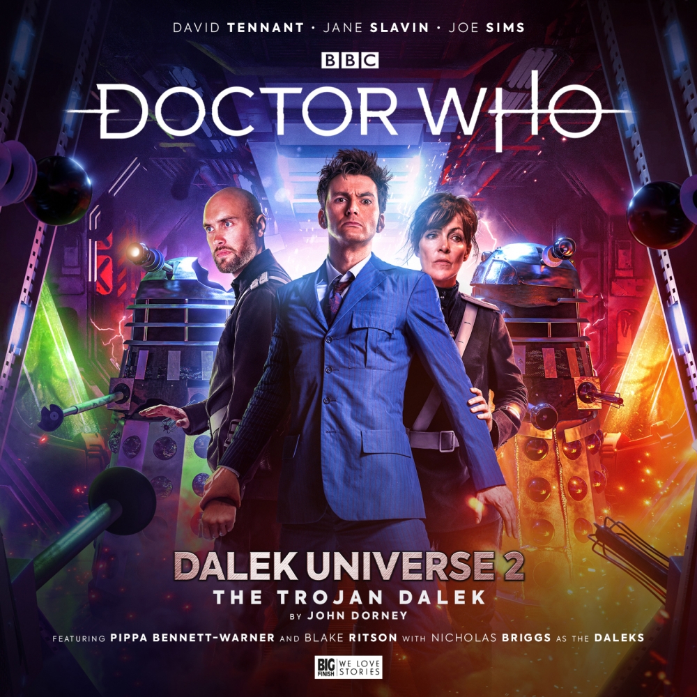 “The Dalek Universe series is a roller-coaster ride and something rarely done in Doctor Who – a journey through different worlds within one storyline universe, but not really a journey through time,” states producer David Richardson. “It gives us such a lovely tapestry to work within: interlinking themes, over-arching plots and brilliant character histories to explore. And all this with David Tennant, Jane Slavin and Joe Sims – what a joyous nine days of recording we had!”