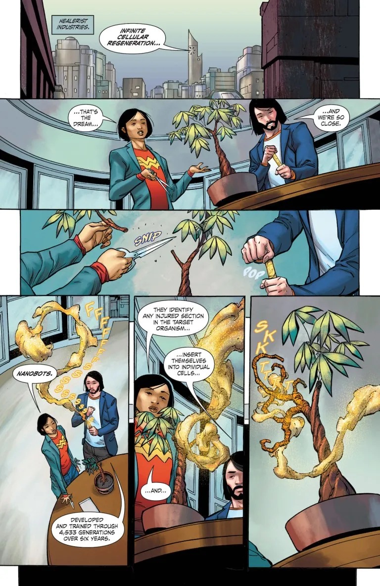 Writer Greg Pak (Action Comics, Batman/Superman) and artist Khoi Pham (Teen Titans) team up to introduce two thrilling new superheroes in the body of one, with the power of billions of nanobots. But how close is too close, with the love of your life literally in your head? And what happens when a couple so closely bound discovers they have very different ideas about how their newfound powers should be used?