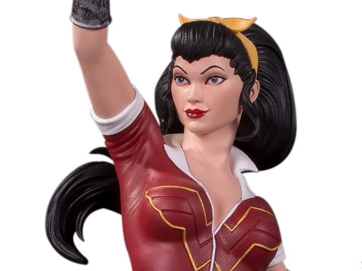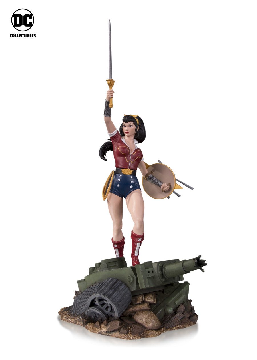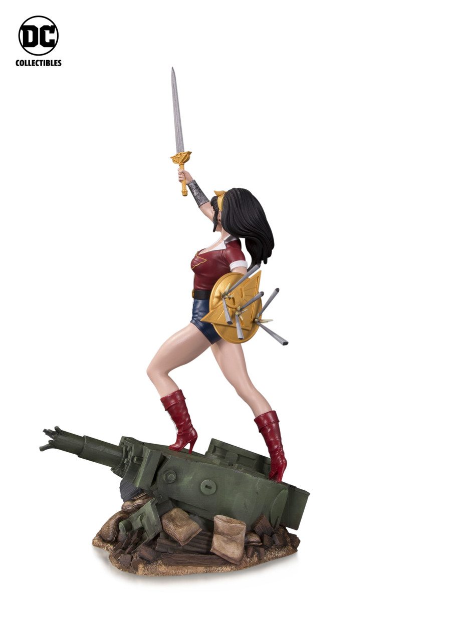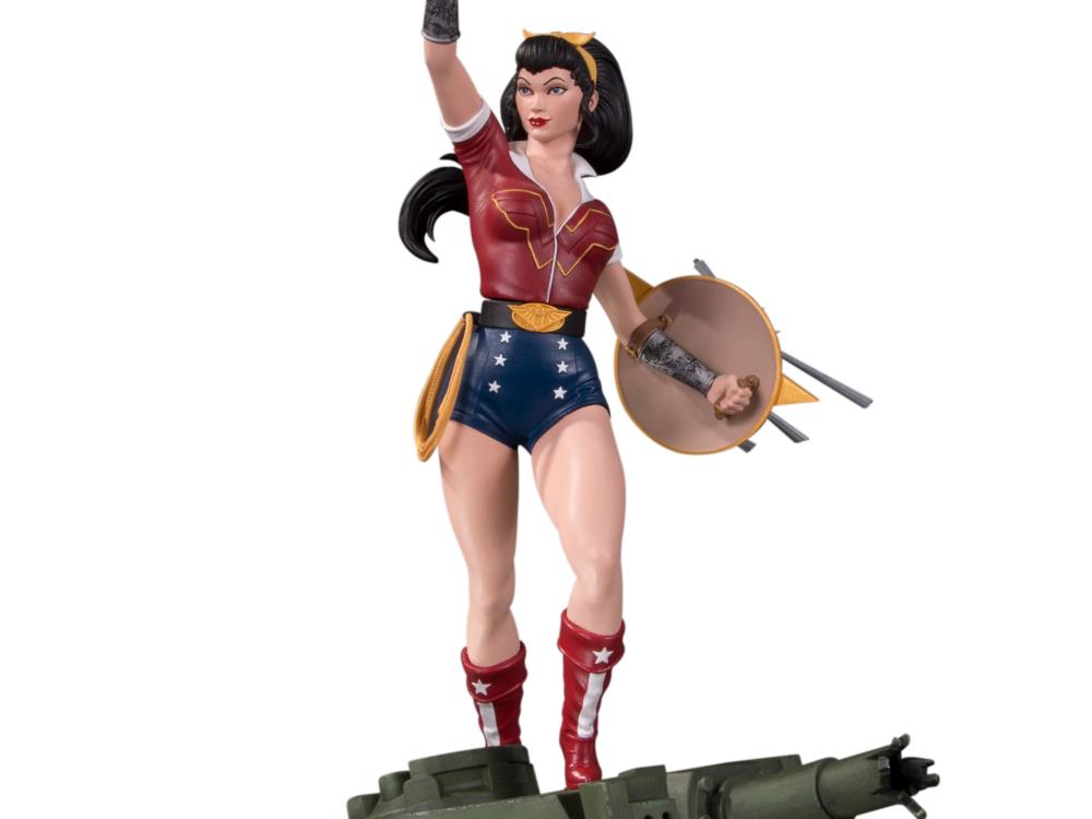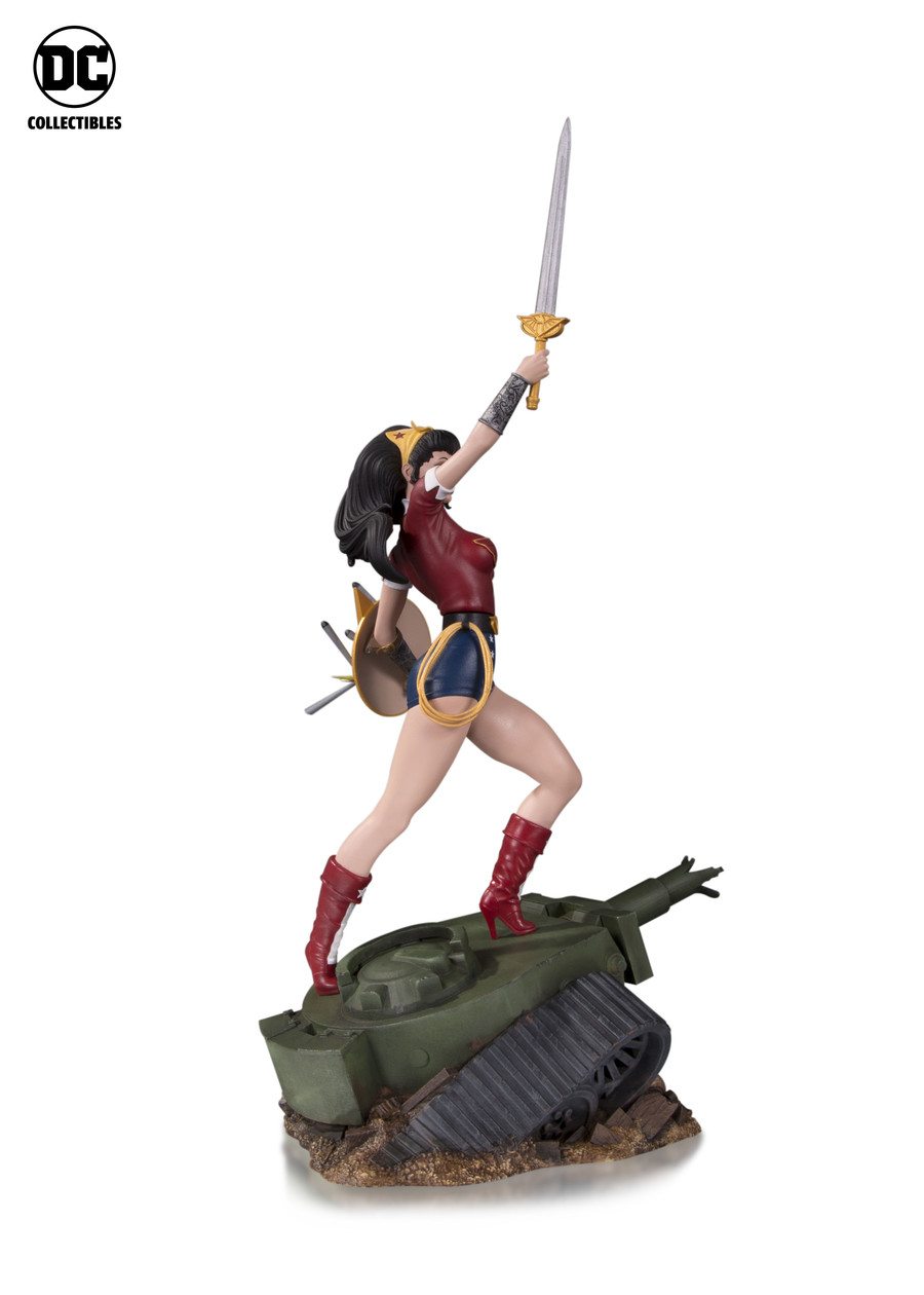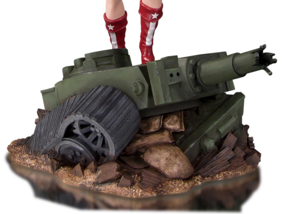 “The legendary Amazon warrior, Diana Prince, conquers an Axis tank on this new addition to the DC Designer Statue Line. This is the DC Bombshells Wonder Woman Deluxe Statue designed by Ant Lucia and built in high strength polyresin, ready for battle to free the world from tyranny.“