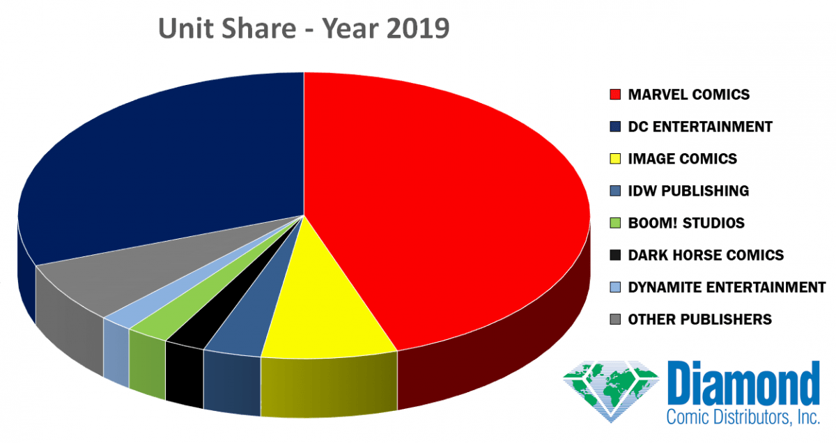 Diamon Comic Distributors has released details of the top selling titles for 2019, with DC Comics claiming top spot in both the comic book and graphic novel charts but Marvel ending the year as the top publisher in the industry with a 40.2% dollar share and 44.7% unit share compared to DC’s 29.3% and 30.7%.