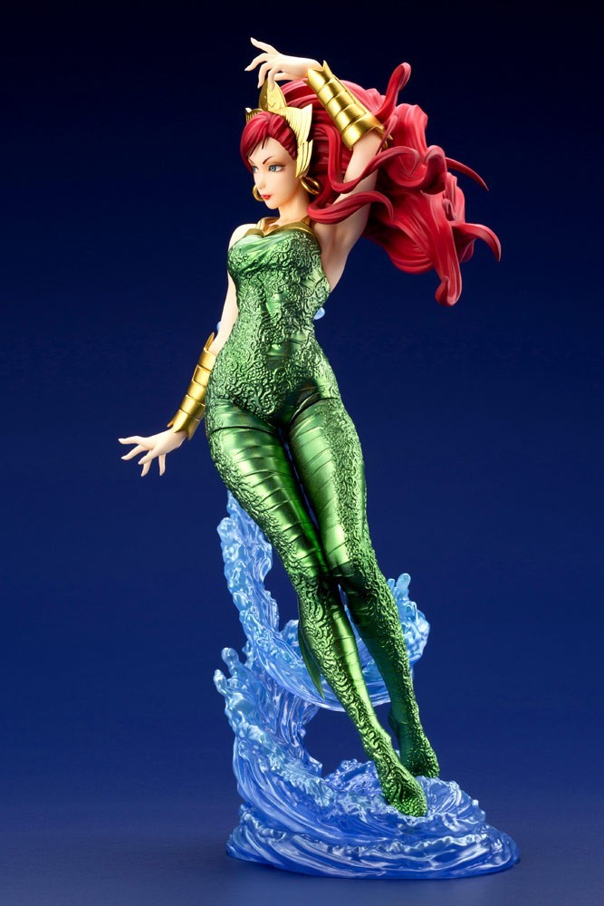 Mera was beautifully rendered into the Bishoujo style by Bishoujo series illustrator Shunya Yamashita as she displays her Atlantean roots with her graceful yet dynamic pose and her long, glistening hair as it flows beautifully throughout.