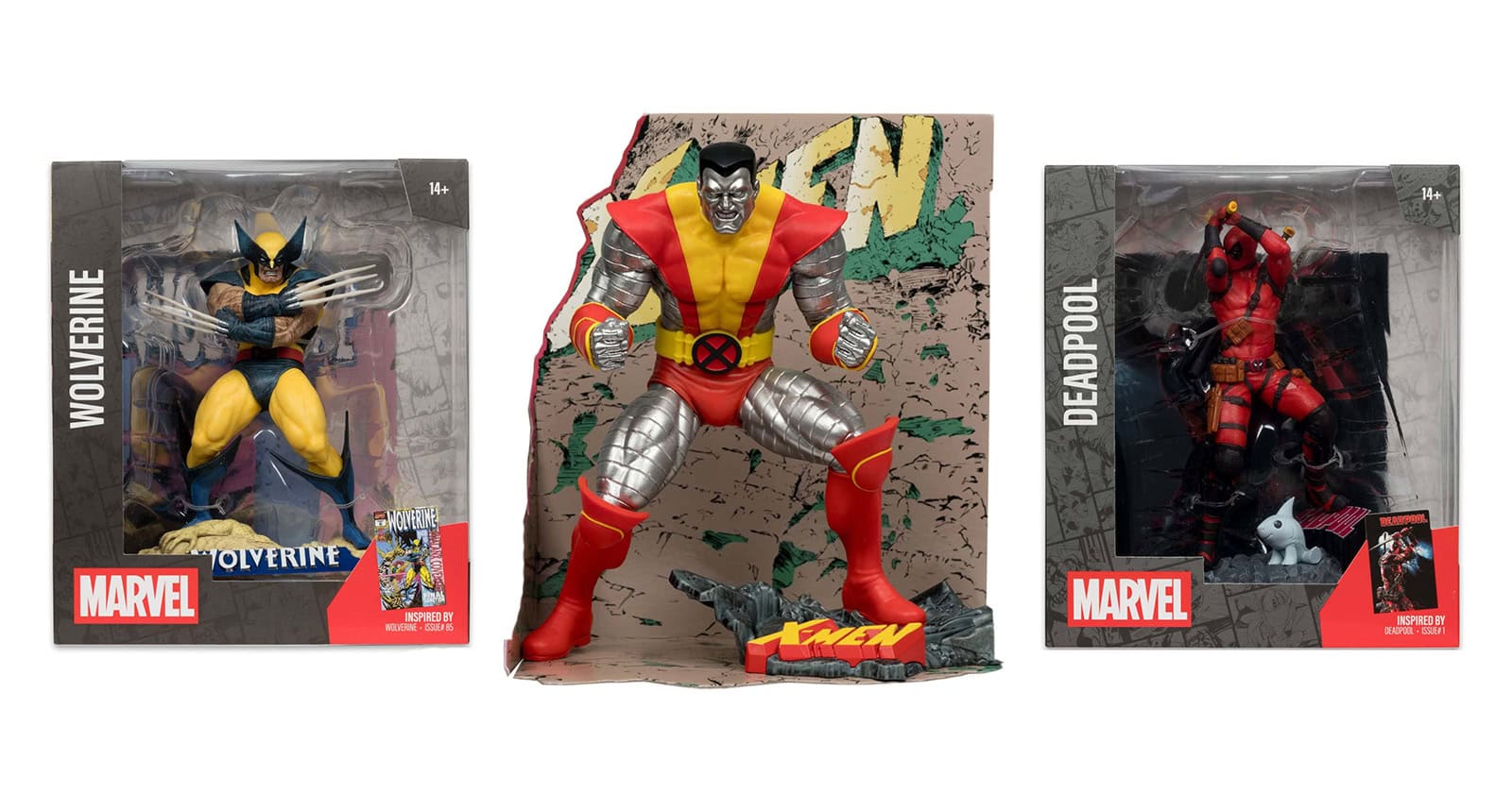 McFarlane Toys has revealed a new wave of comic book-inspired Marvel collectibles featuring Deadpool (Deadpool #1), Wolverine (Wolverine #85), and Colossus (X-Men#1), each with scenic background display dioramas inspired by their respective comic book covers. The collectibles are available to pre-order now, priced at $34.99 each; take a look here…![]()