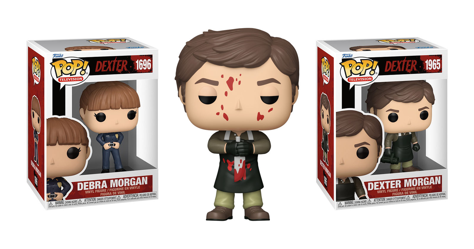 Funko has unveiled the first ever wave of Pop! Vinyl figures for Showtime’s acclaimed crime thriller series Dexter, which includes two versions of Dexter Morgan in his apron and gloves ready to hand out justice and satisfy the desires of his dark passenger, and his adoptive sister Debra Morgan in her Miami Metro uniform