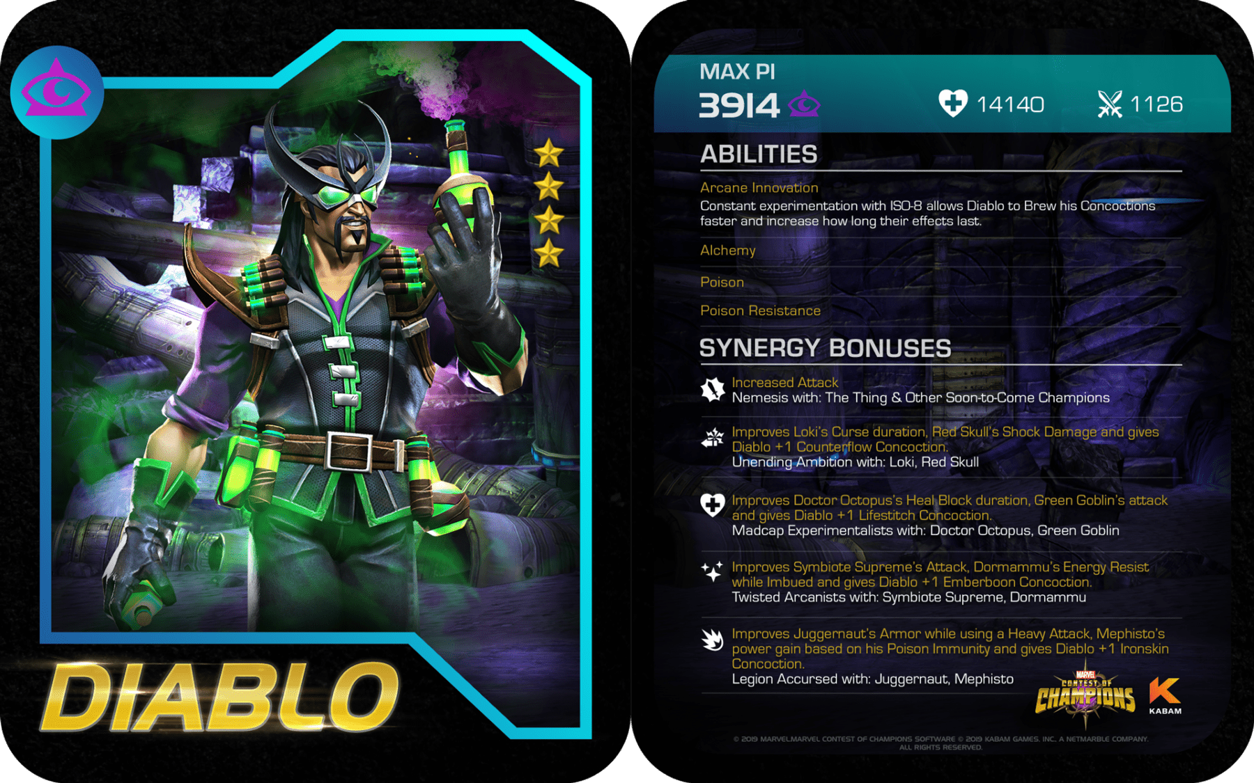 An unrivaled alchemist and a member of Spanish nobility, Esteban Corazon de Ablo uses his arcane concoctions to lengthen his life, incinerate his foes and more. Driven by an unending desire to become as powerful as a god, Diablo now finds himself in the Contest hoping to secure the ISO-Sphere for his continued experimentation. Ambition pushes the Spanish nobleman to acquire power at all costs, and very few heroes can, or will, stand in his way.