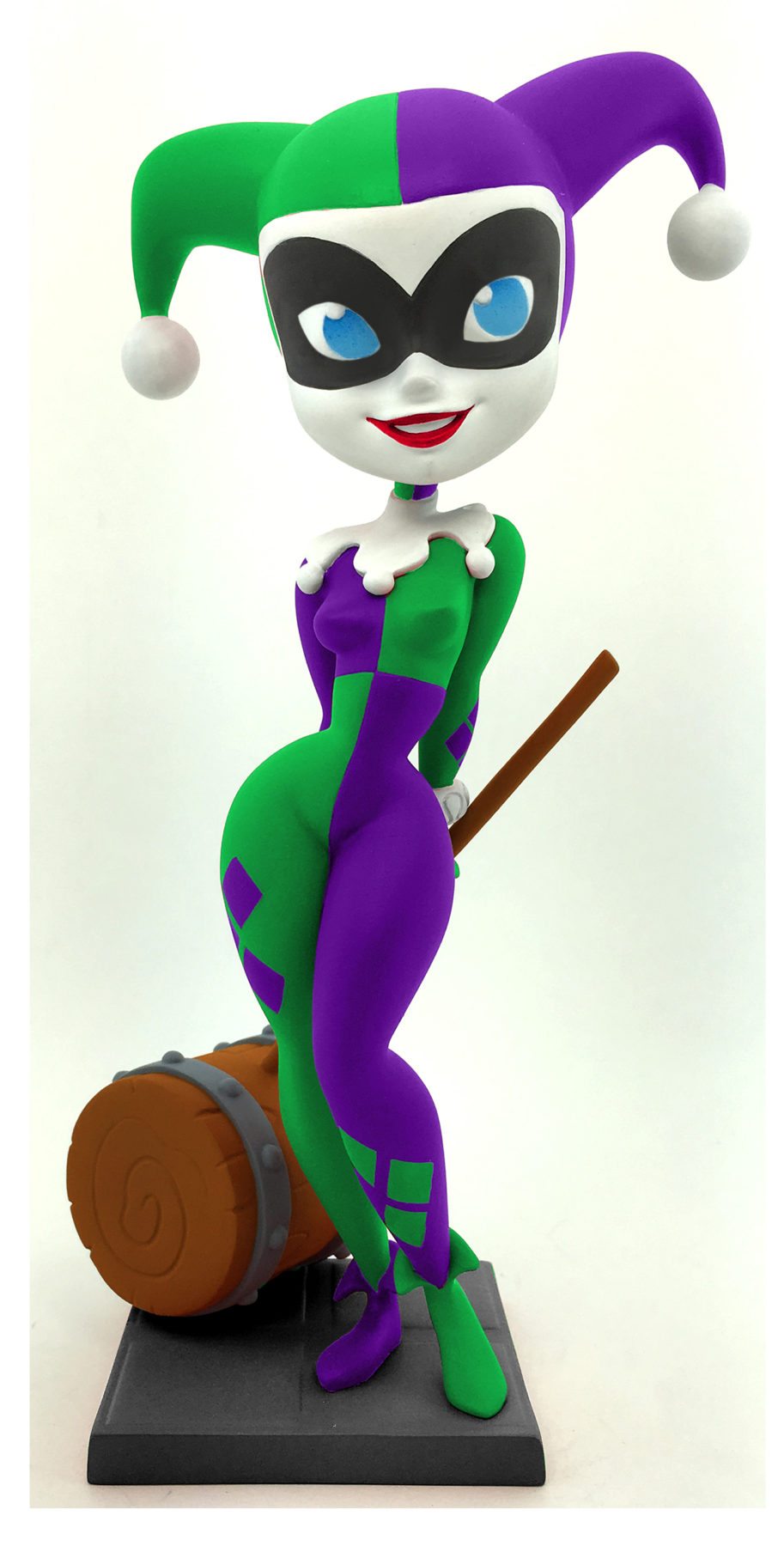 Harley Quinn has been around for over 25 years and she is as crazy as ever! This Previews-exclusive variant of the 7-inch Classic Harley Quinn vinyl figure highlights her connection to The Joker by giving her classic jester costume a green-and-purple makeover. She playfully holds her signature mallet behind her back as a reminder that, when Harley is around, mayhem is always just moments away! Designed by Pedro Astudillo and Anders Ehrenborg, the figure is packaged inside a display-worthy window box. (DEC178678) Limited to 2,000 pieces.