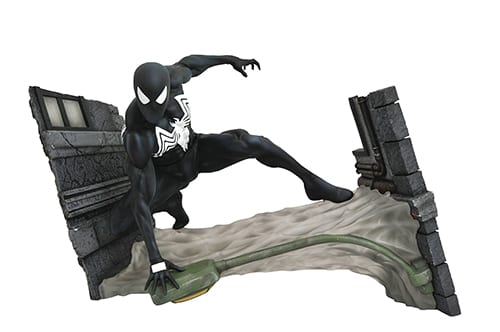 Diamond Select Toys adds a spectacular new figure to its Marvel Gallery line as Spider-Man celebrates Free Comic Book Day with the black costume variant in the PREVIEWS Exclusive Marvel Gallery: Symbiote Spider-Man PVC Statue (NOV180013; SRP $45.00)! Spider-Man lives up to his namesake, crouched on a web slung across an alleyway, portraying the hero in his element. Measuring approximately 7” high by 11” wide, this detailed sculpt by Alterton is based on a design by Caesar, and comes packaged in a full-color window box.