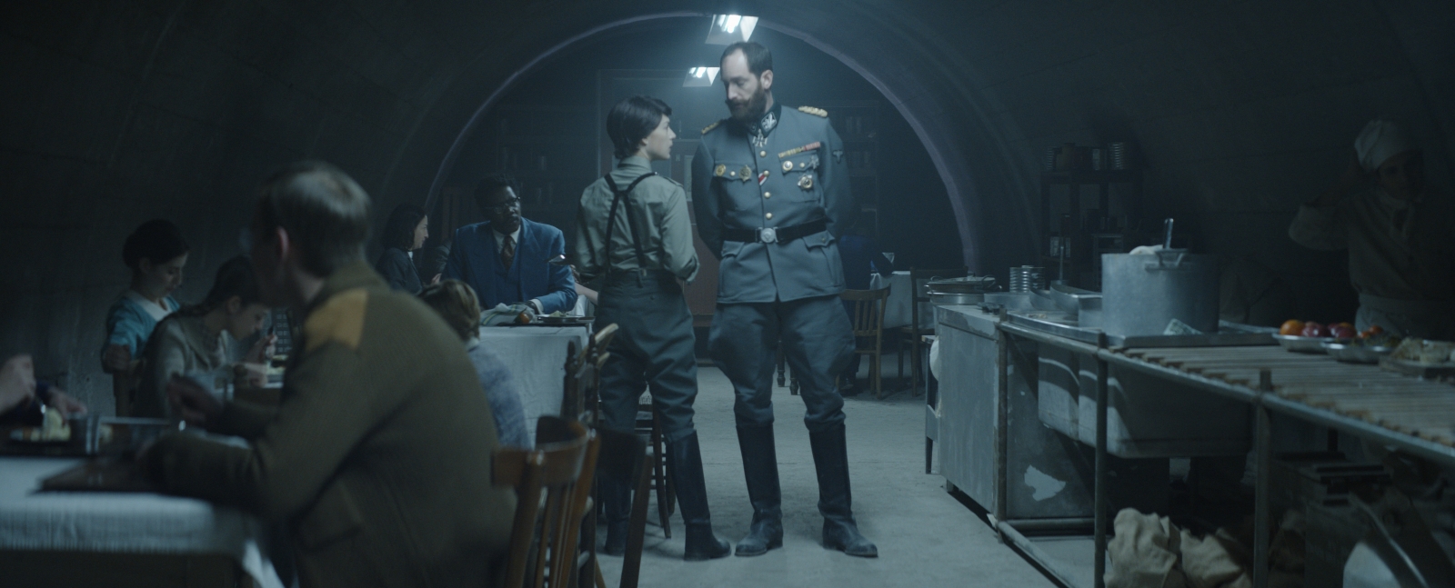 When the new producers joined in the project, preproduction began pretty quickly. Producers Leo Maidenberg and Jad Ben Ammar were enthusiastic about the movie, and they let me make key scenes bigger. But bigger means also challenging. Probably from a managing point of view, the most difficult scene was the party during the LARP. We shot during the Italian second pandemic wave, in January 2021. I can tell you that managing a hundred extras, inside a real bunker, all dressed up in period costumes, in a scene where a big chandelier falls on their heads, is not easy at all. We shot with three troupes working at the same time, the German rock’n’roll going on, and it was cold. Very cold. So there was a lot going on to say the least.