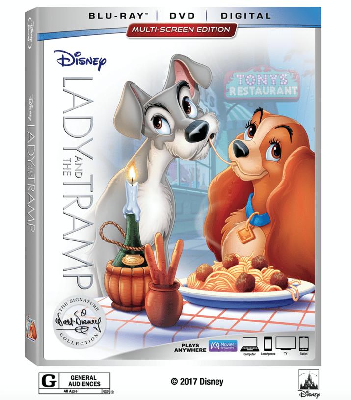 The Walt Disney Signature Collection edition offers three exciting ways to watch Lady and the Tramp—the original theatrical version, sing-along mode and Walt’s story meetings—both Digitally and via the Multi-screen Edition (formerly the Blu-ray Combo Pack). The Multi-screen Edition includes Blu-ray, DVD and a Digital copy, giving in-home consumers the flexibility to watch the film on different devices. In addition to classic bonus features, all-new extras invite viewers to enter Walt Disney’s original office suite on the Studio lot, discover Walt’s personal passion for pups, and receive a celebrity-hosted spaghetti and meatballs cooking lesson.