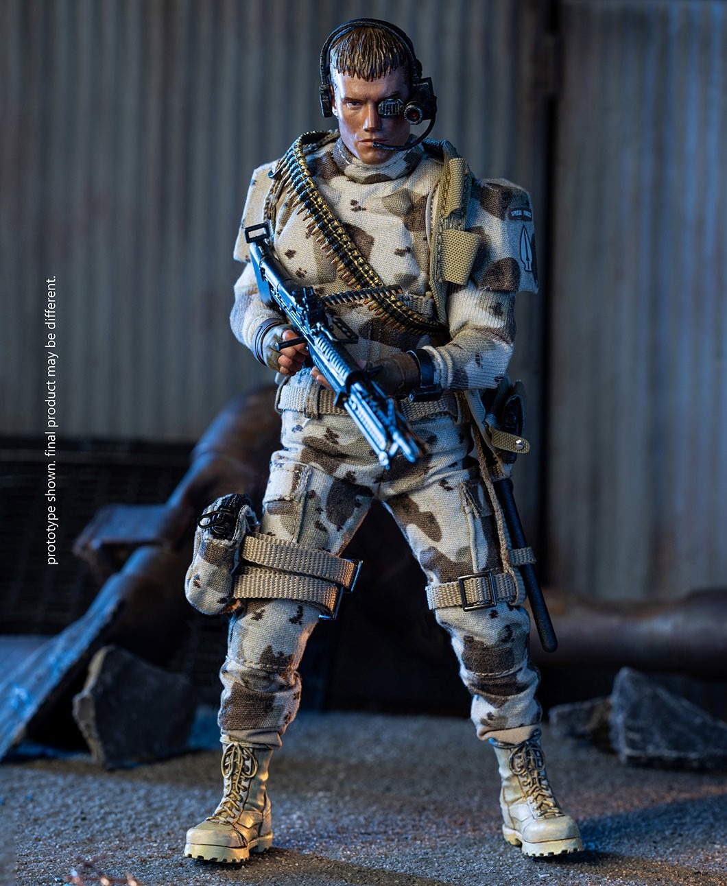 Accessories include an M60 machine gun, MP5K SMG with a detachable magazine, Desert Eagle pistol with a detachable magazine, two grenades, a communication headset, two ammo belts, a police baton, and a life meter. Additionally, the figure comes with seven interchangeable hands and two interchangeable head sculpts to ensure dynamic combat poses, to recreate the film’s intense scenes.