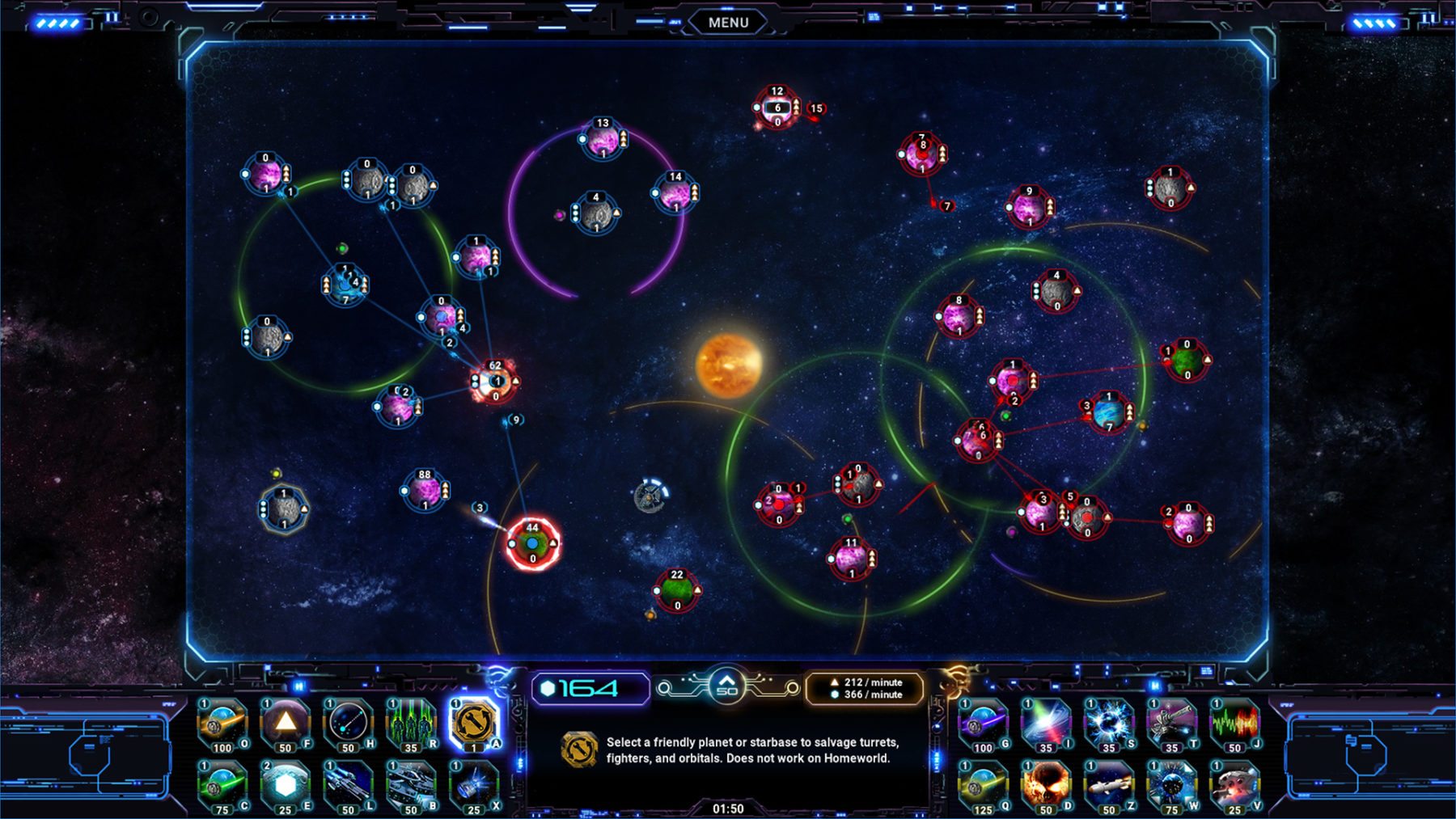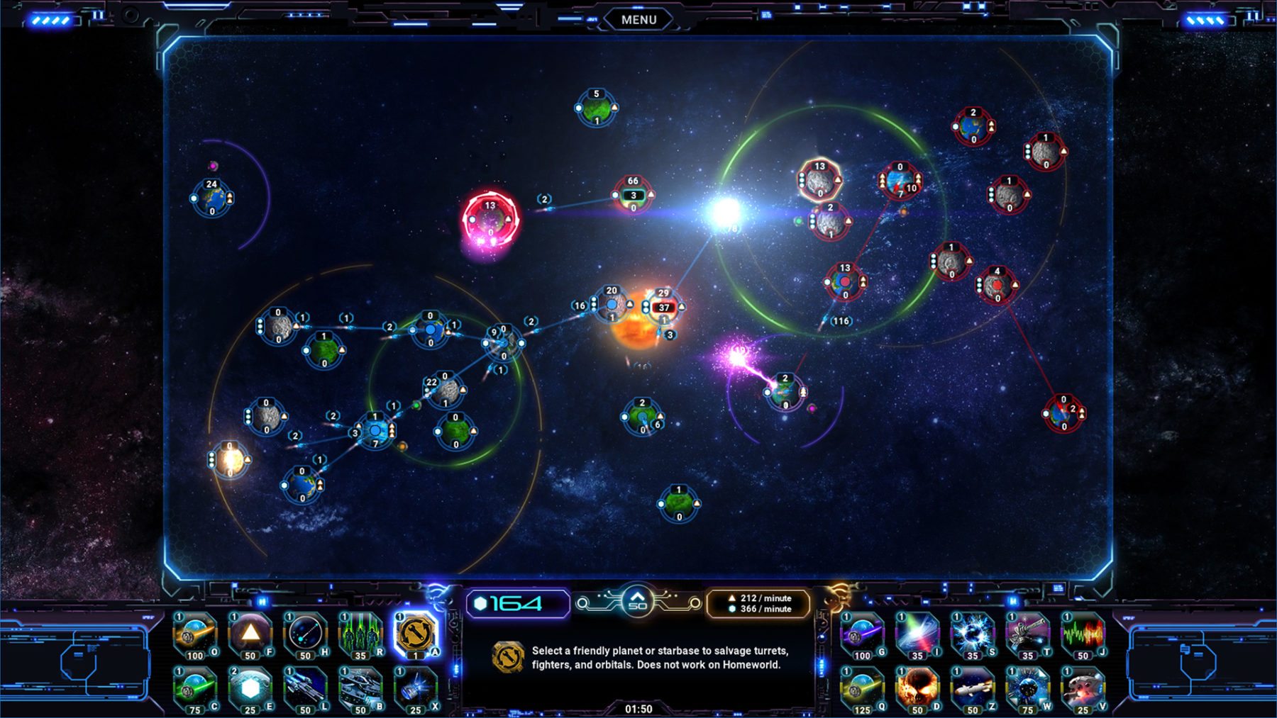 - Explore and expand a massive solar system by acquiring multiple planets.