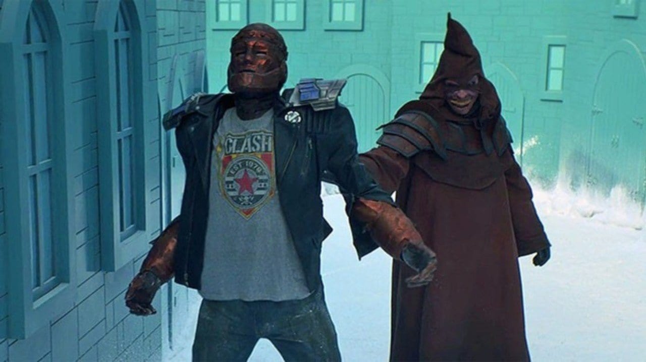 Following the advice of a magical dusky-blue serenading horse head, they quickly find and secure this 18-year-old lad named Elliot. Cliff and Crazy Jane are then sent by Kipling to locate a stigmatized Spanish priest. Their mission? Sew these wounds shut, which incidentally also happens to be a doorway to the lost city of Nurnheim. Well, things turn topsy-turvy pretty darn fast and our duo of misfits are sucked in through the glowing lesions, appearing on the other side where they are promptly taken prisoner. Dazed and confused Cliff and Crazy Jane are taken before the demented High Priestess of Nurnheim who dispatches her elite guard to retrieve Elliot. These otherworldly lackeys plough through our team of misfits in Doom Manor and succeed in their mission. The episode comes to a close, with the appearance of a colossally eye in the sky as the cult commences their ritual.
