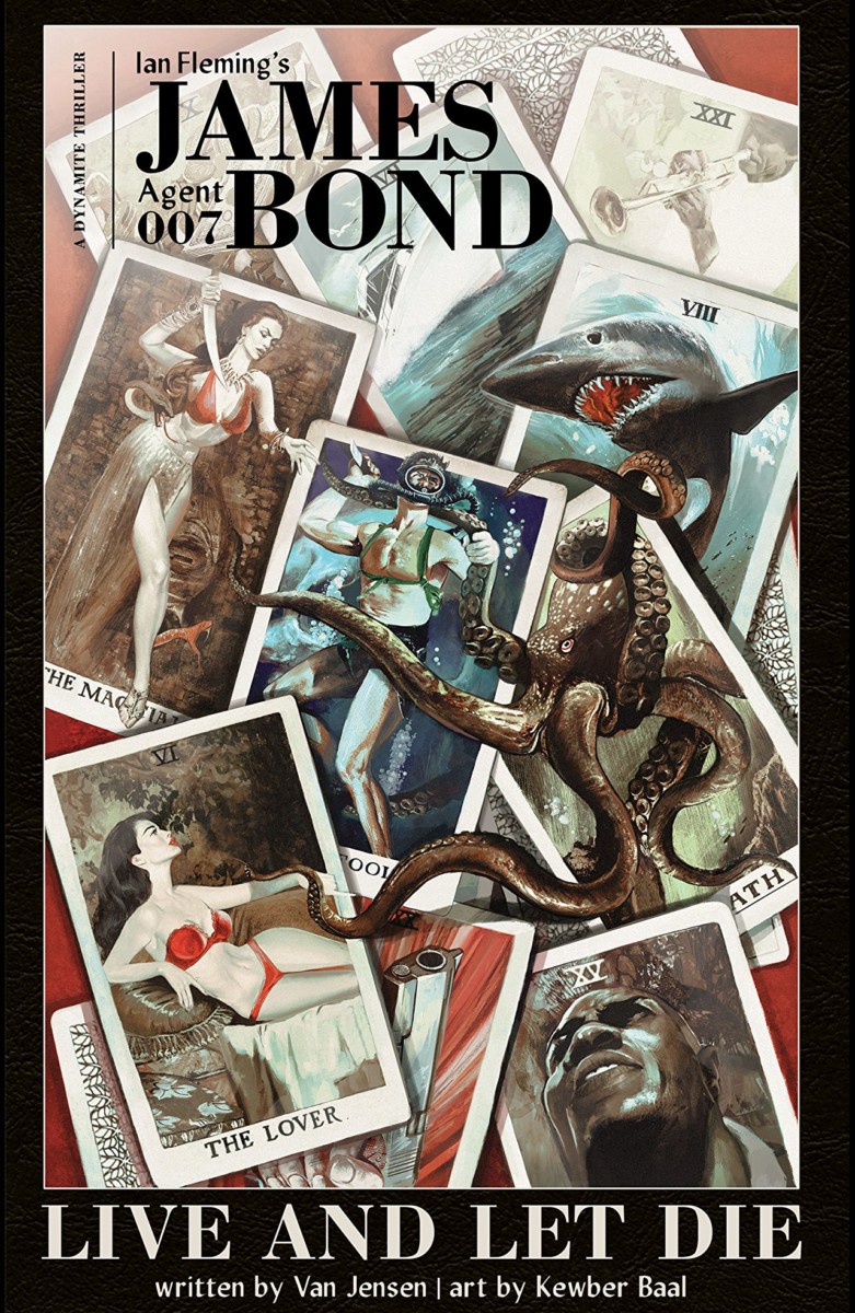 “Live and Let Die is an intense sprint, full of huge action and terrifying villains,” said writer Van Jensen. “It’s both a mystery and a thriller, as Bond digs into the world of Mr. Big and fights to survive against sharks, and even a very hungry octopus. To work in the world that Ian Fleming created is an incredible honor. This was a particularly fun project, given how grandiose it is, full of intricate action set pieces and fun visuals. Translating the novel to comics was all about staging those beats in the most fun, intense way possible. Kewber has been a perfect partner in that work. The underwater battles particularly are the highlight of the book, but every page has something wonderful.”