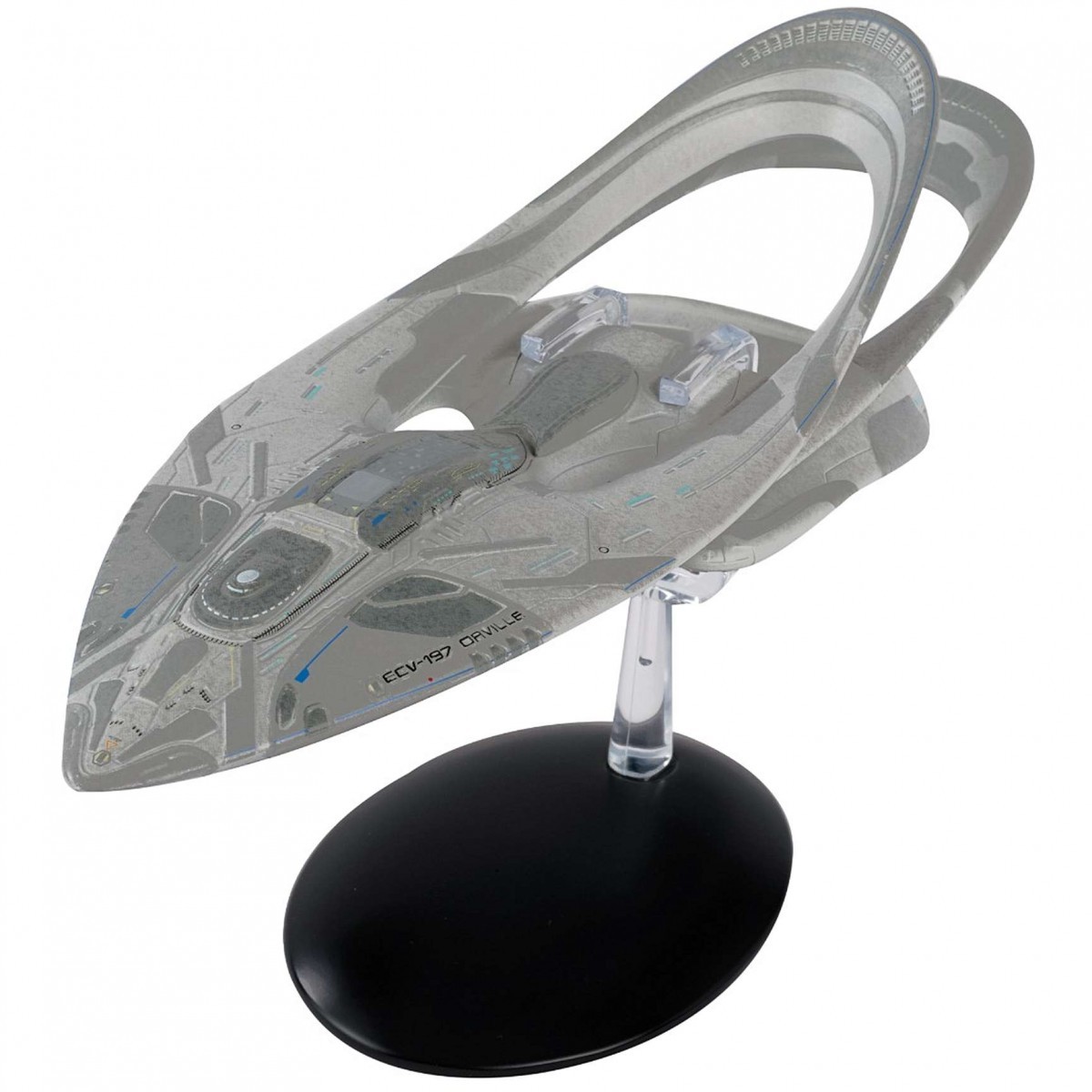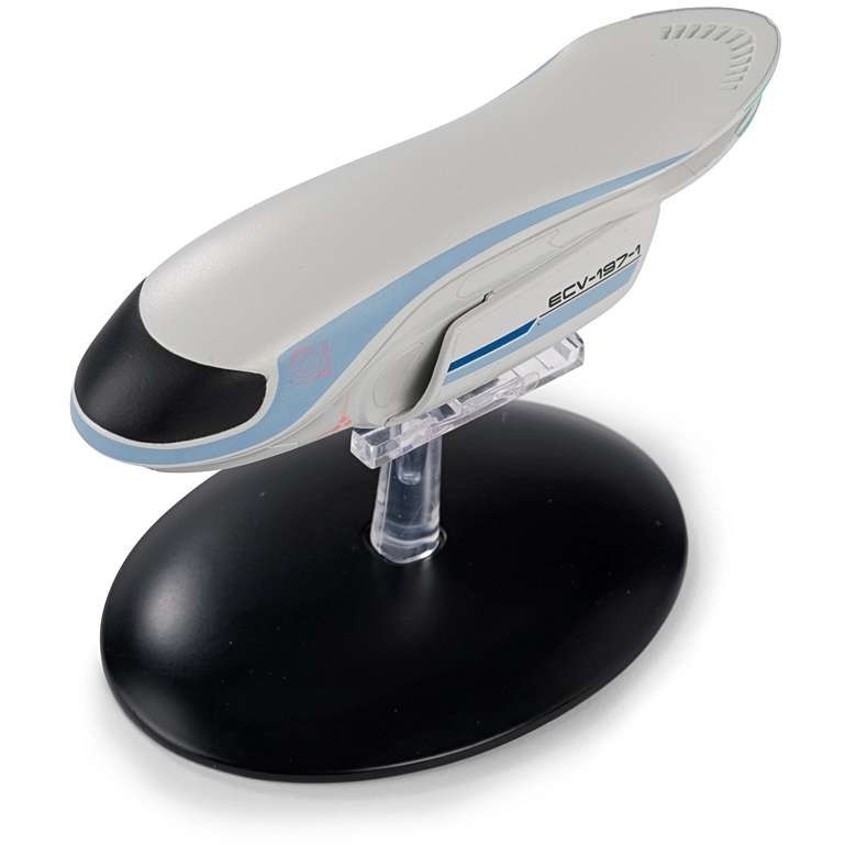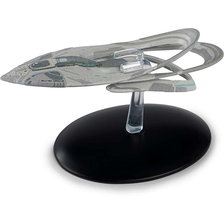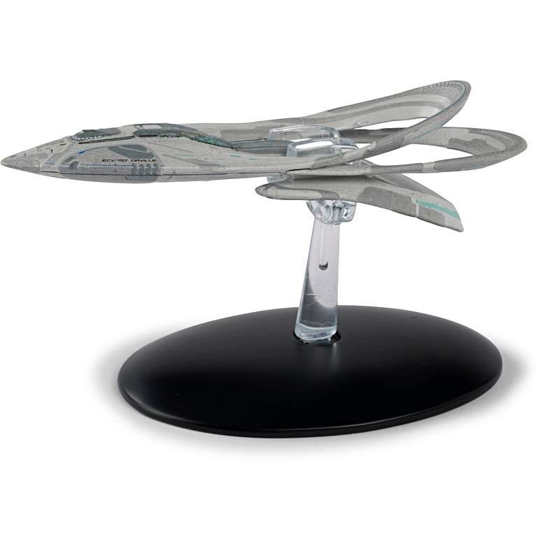 USS Orville (ECV-197), the eponymous vessel of The Orville! This Exploratory-class vessel was designed for long voyages into uncharted space, carrying nearly 300 crew members and their families.Union Shuttle (ECV-197-1), the sleek shuttlecraft used by the USS Orville’s crew to ferry themselves to other ships and the surfaces of alien planets.