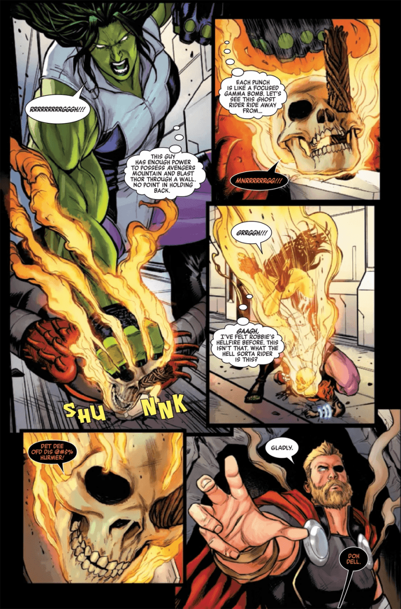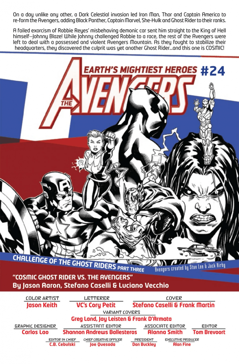 ‘Challenge of the Ghost Riders’ continues in Avengers #24 this week as Earth’s Mightiest Heroes find themselves battling Cosmic Ghost Rider; check out a preview of the issue here…