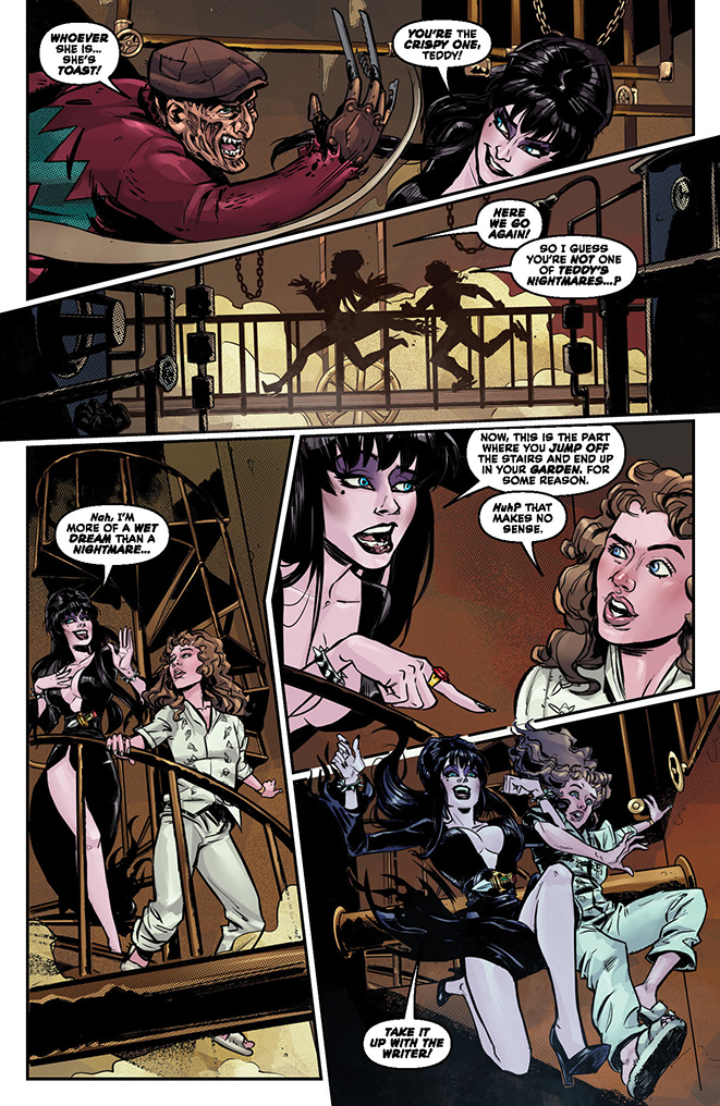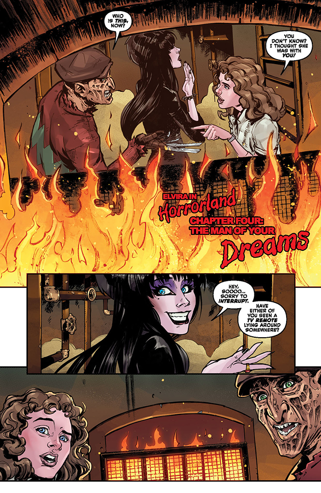 The Mistress of the Dark finds herself face-to-face with another icon of horror this week as Freddy Krueger invades Dynamite Entertainment’s Elvira in Horrorland #4; check out the official preview here…
